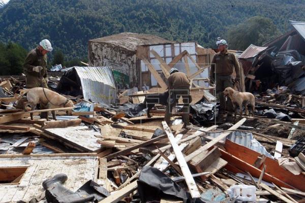El cadáver, correspondiente a un hombre adulto, fue encontrado en la zona céntrica del poblado, situado a unos 1.200 kilómetros de Santiago, en el municipio de Chaitén, durante labores de despeje de escombros realizadas con maquinarias, precisó a los periodistas Alejandro Vergés, director regional de Emergencia.
