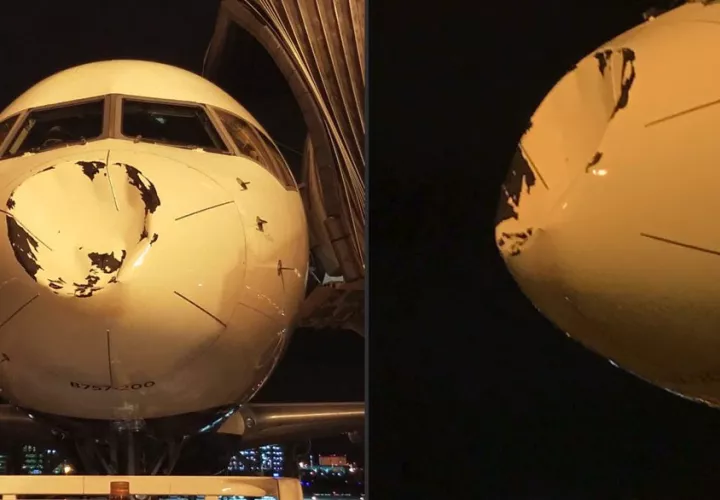 Avión choca con ave y termina con la nariz chata