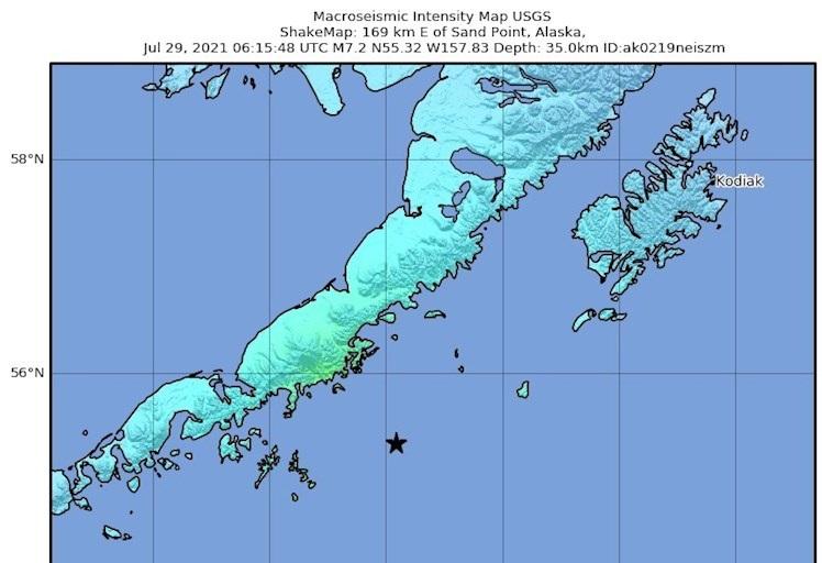 El terremoto de magnitud 8,2 se vio acompañado de una veintena de temblores de menor consideración y diferente profundidad en la misma región, a unos 120 kilómetros de Chignik (Alaska), entre los cuales el siguiente más fuerte alcanzó una magnitud de 6,2 y cuyo hipocentro se registró a 42 kilómetros de la superficie.