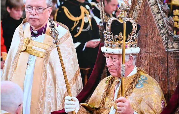 Sentado en la silla de roble de San Eduardo, considerado el mueble más antiguo del Reino Unido y colocado sobre un piso de mosaico medieval, Carlos III fue coronado tras recibir las distintas insignias reales, que simbolizan las responsabilidades como el jefe de Estado británico hasta el día de su muerte.