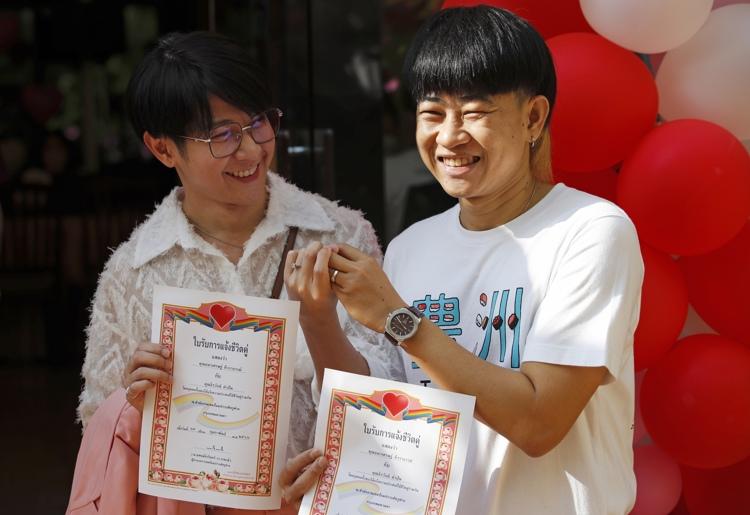 "Sentimos como si estuviéramos saliendo del armario, esta cita hoy significa mucho para que las personas LGTB sean más visibles para la sociedad", dice a EFE Meepooh Dew, mientras exhibe orgullosamente su "certificado de matrimonio" con su pareja, una chica transexual.