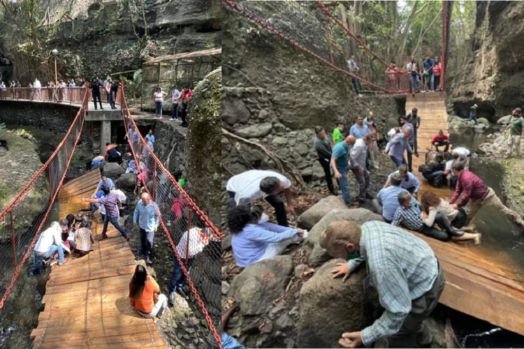 Viral se ha vuelto el video en el que muestra como colapsa un puente colgante, justo en el momento en que lo cruzaban el alcalde de Cuernavaca, Julio Urióstegui, su esposa Luz María Zagal, y una comitiva de políticos y ciudadanos, en la capital del estado de Morelos, en el centro de México.