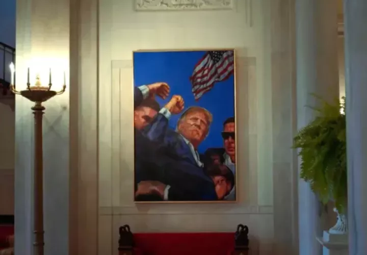 La Casa Blanca estrenó un cuadro que emula el momento en el que Donald Trump sobrevivió a un intento de asesinato el año pasado y lo colgó en la pared donde estaba el retrato del expresidente Barack Obama (2009-2017).