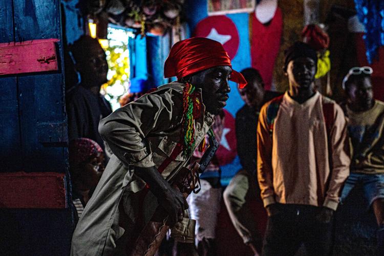 Alrededor, las personas se balancean al ritmo de los tambores rituales, mientras algunos entran en trance. Una mujer de edad avanzada, con un pañuelo rojo atado en la cabeza y cuentas de colores colgando del cuello, empieza a temblar y susurra palabras ininteligibles.