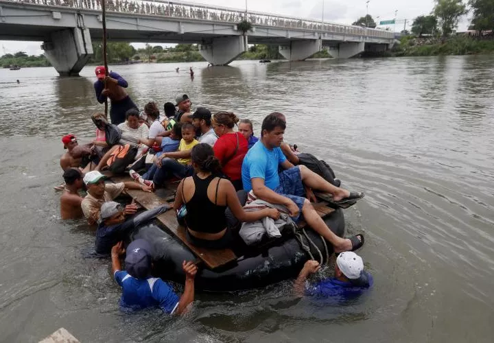 Centenares de migrantes hondureños decidieron ayer cruzar a pie y en balsa el río Suchiate, que separa a Guatemala de México, en su afán por llegar a territorio de Estados Unidos. ACAN-EFE.