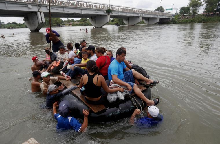 Centenares de migrantes hondureños decidieron ayer cruzar a pie y en balsa el río Suchiate, que separa a Guatemala de México, en su afán por llegar a territorio de Estados Unidos. ACAN-EFE.