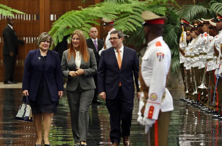 La inédita presencia ayer de Lis Cuesta, esposa del nuevo presidente de Cuba, Miguel Díaz-Canel, en el primer acto oficial, inaugura una nueva etapa en el protocolo de la isla comunista. EFE.