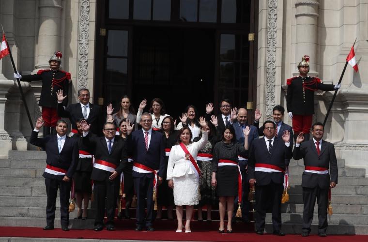 La presidenta de Perú, Dina Boluarte, nombró este sábado a su primer gabinete de ministros, que está encabezado por el exfiscal Pedro Angulo, con el objetivo de consolidar la democracia y la gobernabilidad, tres días después de haber asumido la jefatura de Estado a raíz de la destitución del exgobernante Pedro Castillo.
