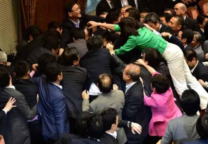 Los legisladores rodearon el asiento del orador, algunos saltaron mesas y tiraron a sus colegas al suelo. Aunque pronto volvió la calma, hubo más enfrentamientos por la tarde, según una crónica de la agencia de noticias Reuters.