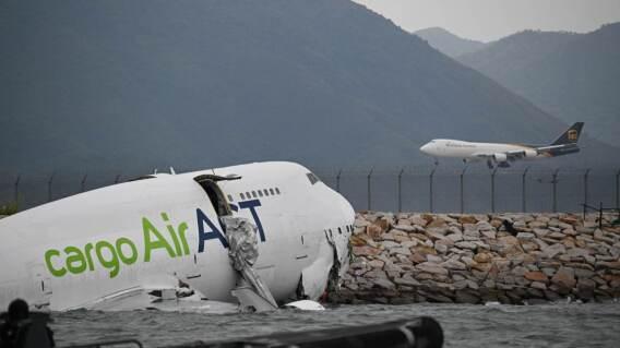 Dos operarios de tierra murieron la madrugada de este lunes cuando un avión de carga procedente de Dubái se salió de la nueva pista del Aeropuerto Internacional de Hong Kong y colisionó contra un vehículo de servicio antes de caer al mar.