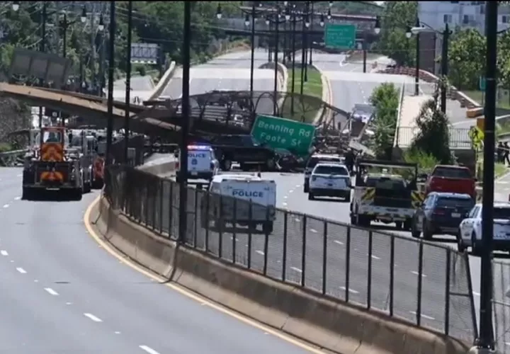 Seis personas resultaron heridas después de que un puente peatonal colapsara sobre la Interestatal 295, en la capital estadounidense, Washington, DC.