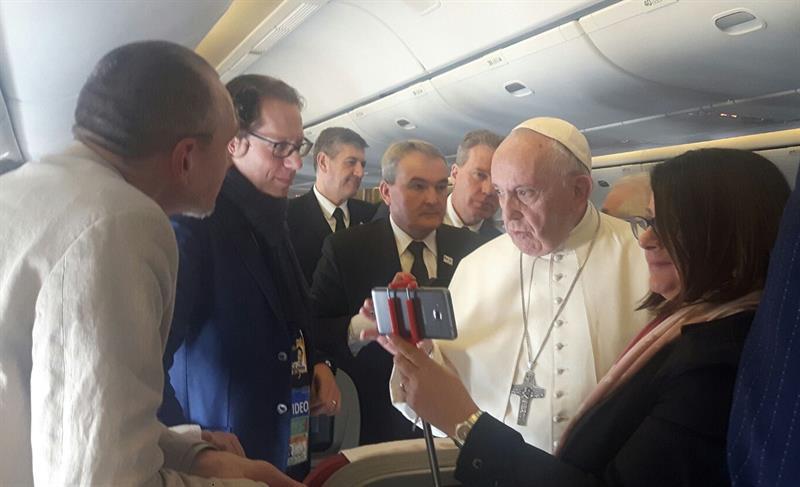El avión de la compañía Alitalia que transporta al pontífice y su séquito arribó al aeropuerto internacional Arturo Merino Benitez a las 19.14 hora local (22.14 GMT), tras un largo viaje procedente del aeropuerto de Fiumicino, en Roma, de más de 15 horas.