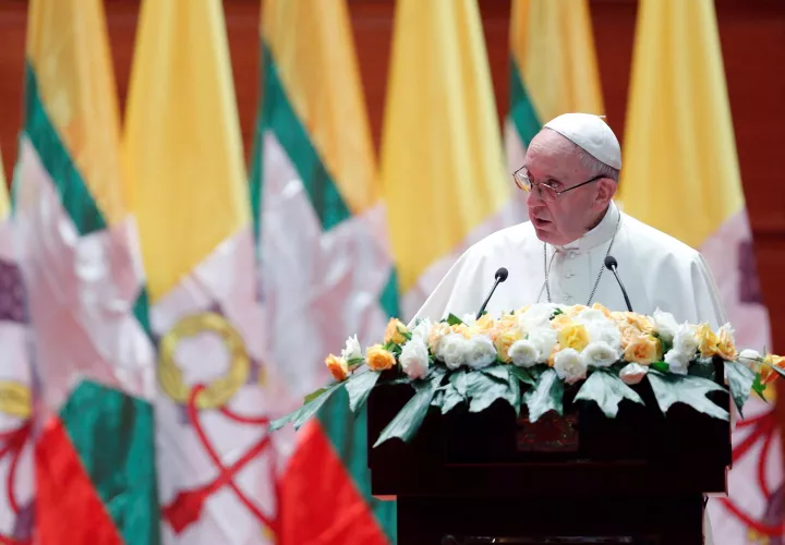 El papa Francisco siguió los consejos de no referirse directamente a la minoría de los rohinyá durante su discurso de hoy a las autoridades birmanas, pero bajo la mirada de la consejera de Estado, Aung San Suu Kyi, pidió el respeto de cada grupo étnico que "sienten como un hogar el país".