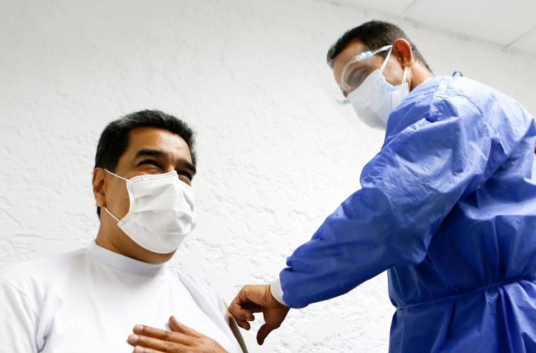 "Mi primera dosis, estoy vacunado", dijo Maduro en un video difundido por el canal multiestatal Telesur que transmitió el momento de la vacunación del presidente y su esposa.