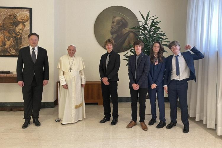 Fue Musk quien confirmó el encuentro al publicar una foto en Twitter en la que se le ve junto con el papa Francisco y cuatro de sus siete hijos.