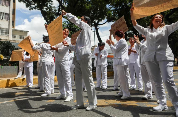 Los enfermeros venezolanos mantienen las protestas para exigir “salarios dignos” y mejoras en las condiciones en los centros asistenciales en los que trabajan, al tiempo que aseguraron recibir "presiones" por parte de las autoridades hospitalarias.