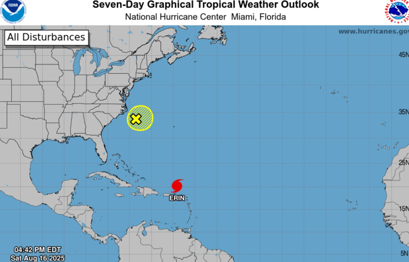 El NHC advirtió además que el oleaje generado por Erin afectará durante el fin de semana a las Antillas Menores, las Islas Vírgenes, Puerto Rico, La Española y Turcas y Caicos.