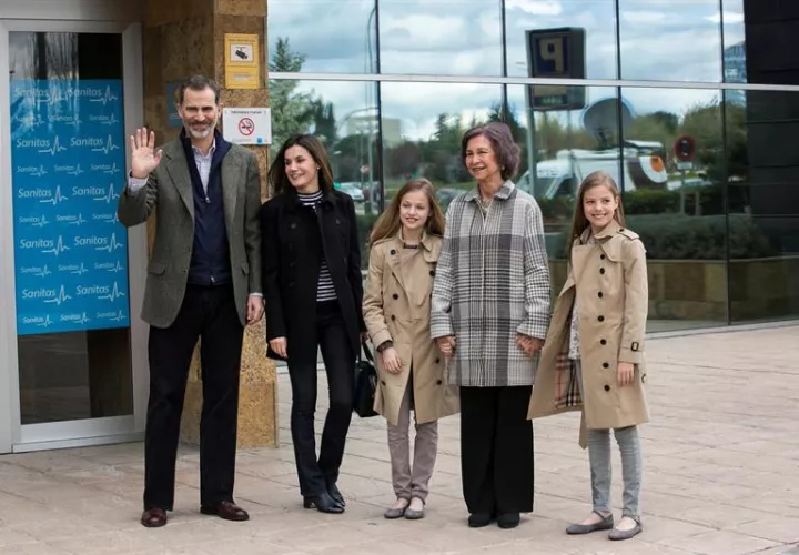 Las hijas del rey Felipe VI visitaron hoy a su abuelo, el rey Juan Carlos, en el hospital donde convalece de una operación de rodilla, acompañadas por sus padres, los reyes Felipe y Letizia, y su abuela, la reina Sofía, lo que propició una imagen de conjunto de la Familia Real a las puertas del centro sanitario.