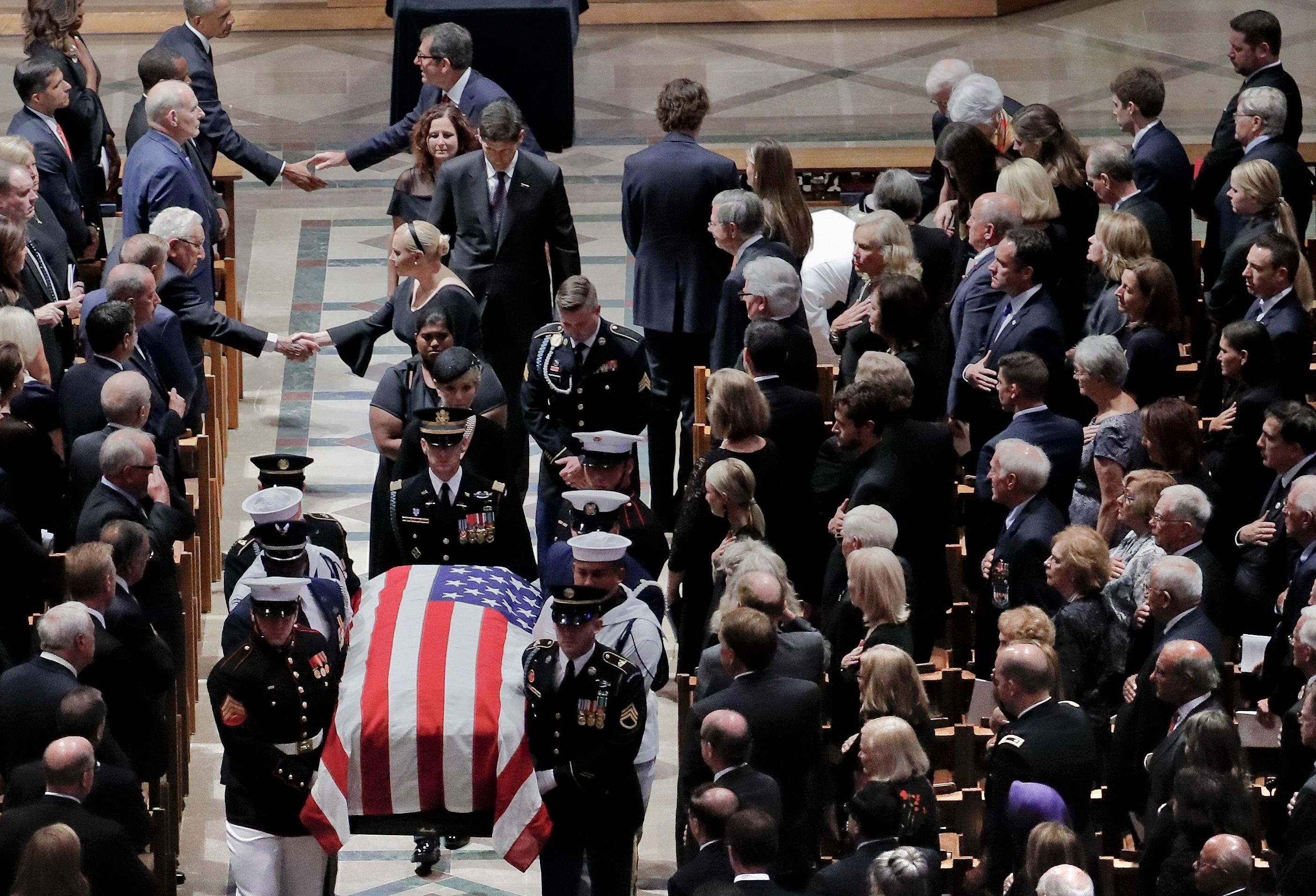 McCain, quien quiso hacer de su adiós un lugar de encuentro para aquellos que han dedicado la vida a servir por Estados Unidos, solicitó a los expresidentes George W. Bush (2001-2009) y Barack Obama (2009-2017) que ofrecieran sendas elegías en la ceremonia, aunque entre ambos truncaron su sueño de llegar a la Presidencia del país.