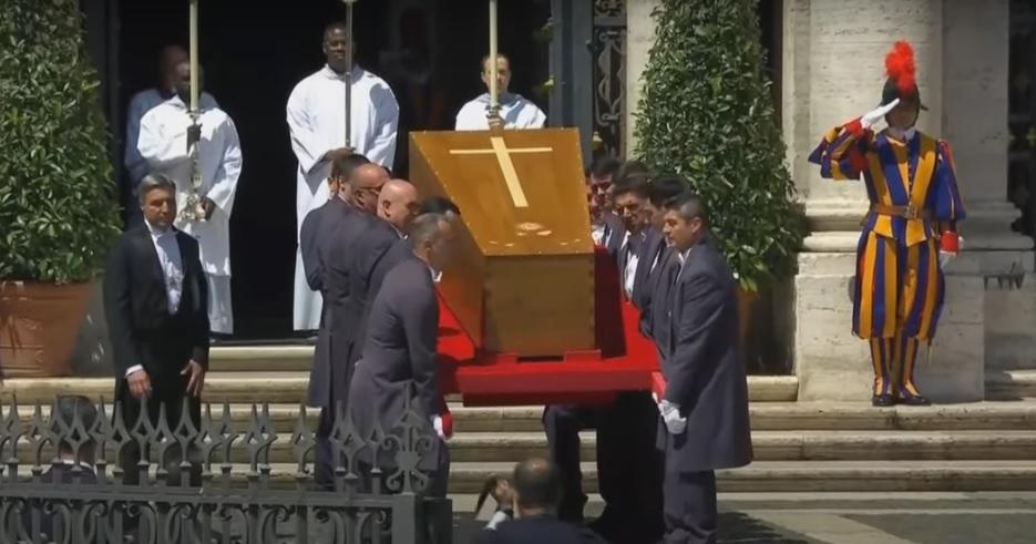 El féretro del papa Francisco, llevado en papamóvil por las calles de Roma desde la basílica de San Pedro tras el funeral, llegó a Santa María la Mayor, para su entierro, como dejó escrito en su testamento.