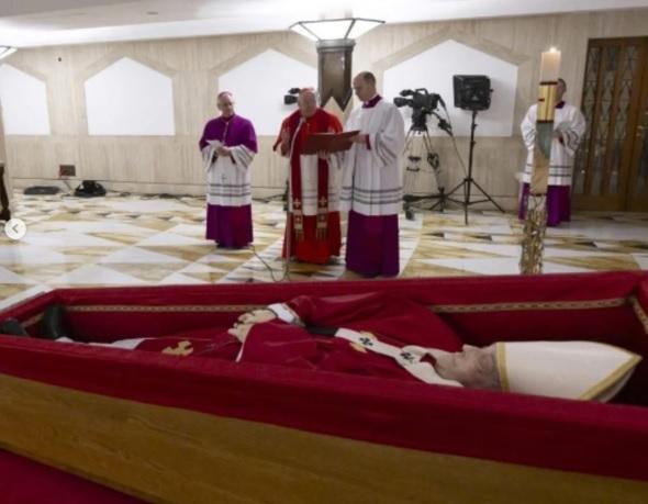 El cuerpo se ha depositado en un único ataúd de madera con el interior de zinc y se expondrá directamente en el féretro abierto, pero no en un catafalco como había sido hasta ahora y tampoco se colocará el báculo papal durante esta exposición.