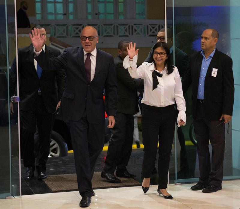 Por su parte, Delcy Rodríguez, exigió hoy "sindéresis y seriedad a los acompañantes del diálogo para que respeten códigos previamente acordados en el cumplimiento de su labor", y afirmó que Heraldo Muñoz "en las postrimerías de su cargo como canciller opta por la triste puerta trasera y sirve a bajos intereses estadounidenses".