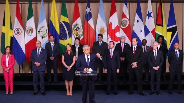 En la reunión participan los cancilleres de Canadá, Chrystia Freeland, de Chile, Heraldo Muñoz; de Colombia, María Ángela Holguín; de Guatemala, Sandra Jovel; y de Perú, Cayetana Aljovín.