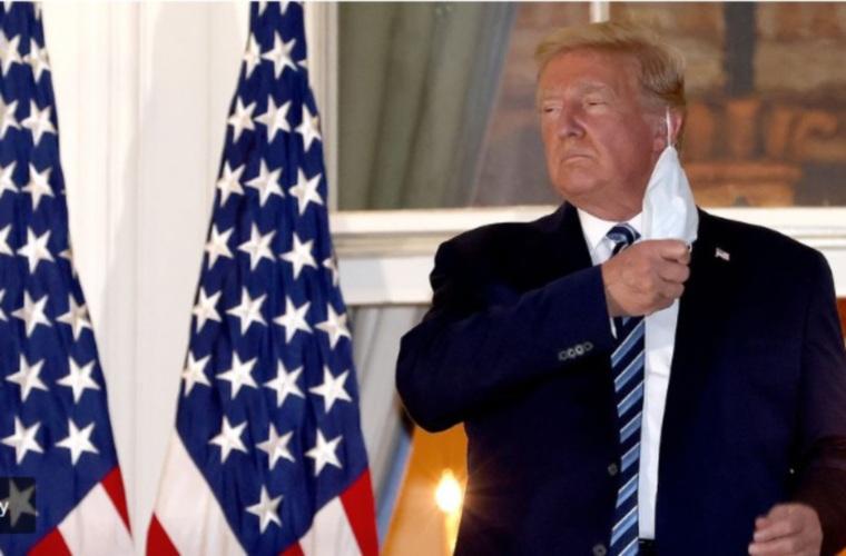 El candidato republicano a la reelección se quitó la máscara y levantó el pulgar a su llegada a la Casa Blanca.
