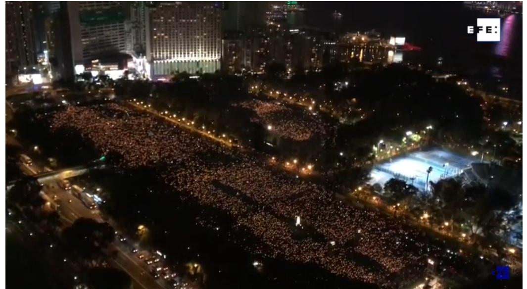 decenas de miles de personas volvieron a darse cita hoy en Hong Kong en la vigilia anual