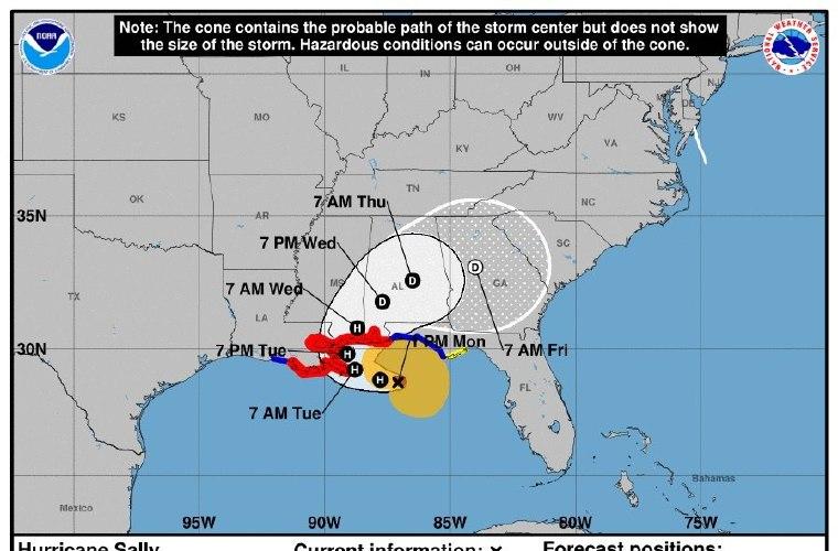 Se pronostica un fortalecimiento entre esta noche y el martes temprano, por lo que Sally será un "huracán peligroso" cuando se mueva a lo largo de las costa norte-central del Golfo de México.