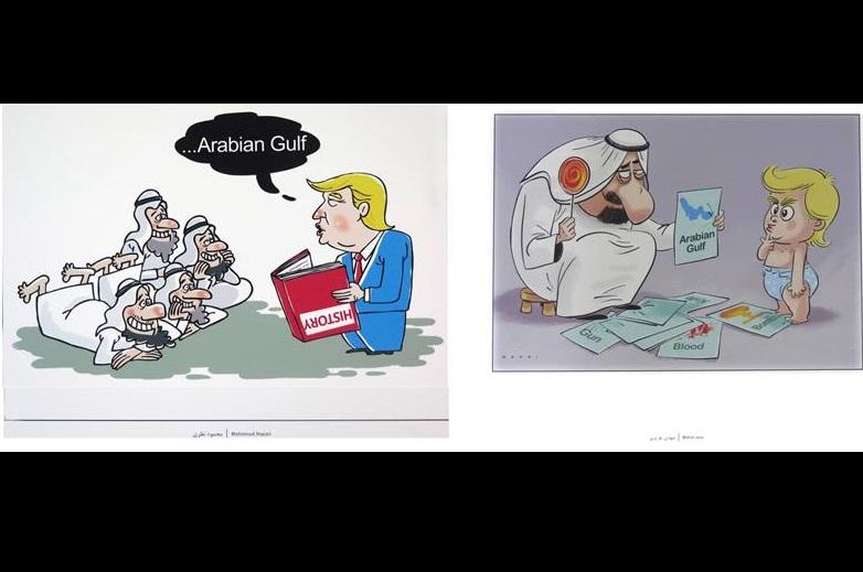 Los caricaturistas iraníes retratan con sorna la "ignorancia" del presidente estadounidense, Donald Trump, a quien recomiendan estudiar "geografía e historia" para no confundirse en un futuro con el nombre del golfo Pérsico.