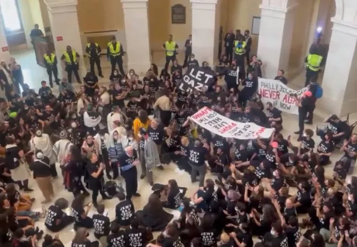 La organización "If not now" había convocado a la gente bajo el lema "Los judíos dicen 'Alto el fuego en Gaza' ahora" y eligió el Capitolio, que alberga el Senado y la Cámara de Representantes de Estados Unidos, para que los legisladores oyeran "alto y claro" ese reclamo, según indica en X.