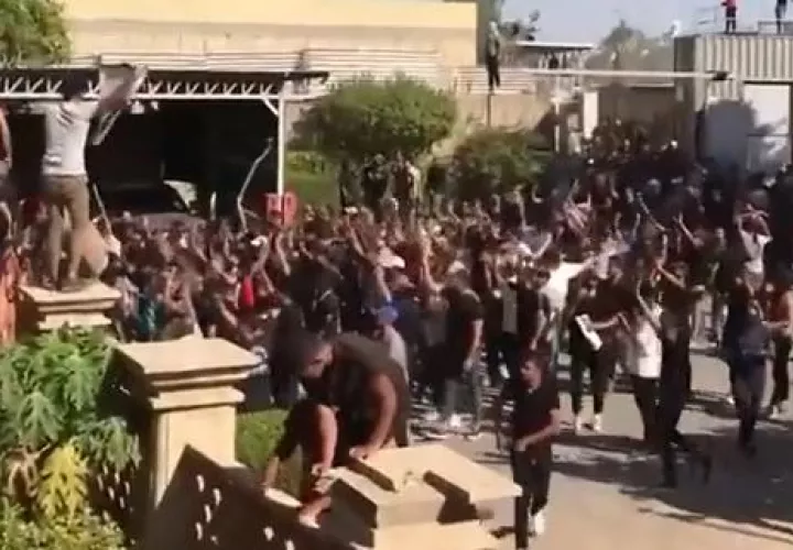 Medios locales difundieron las imágenes de los manifestantes, que alzaban una copia del Corán, escalando y entrando en el edificio de la misión diplomática.