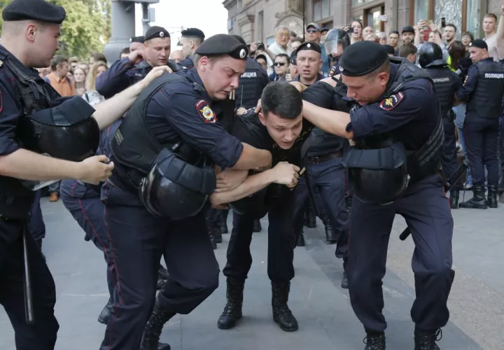 La policía rusa reprimió duramente a manifestantes en el centro de Moscú el sábado, golpeando a algunas personas y arrestando a cientos más que protestaban por la exclusión de candidatos opositores de las urnas para el concejo municipal de la capital rusa.