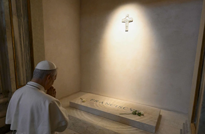 León XIV visitó la tumba de Francisco