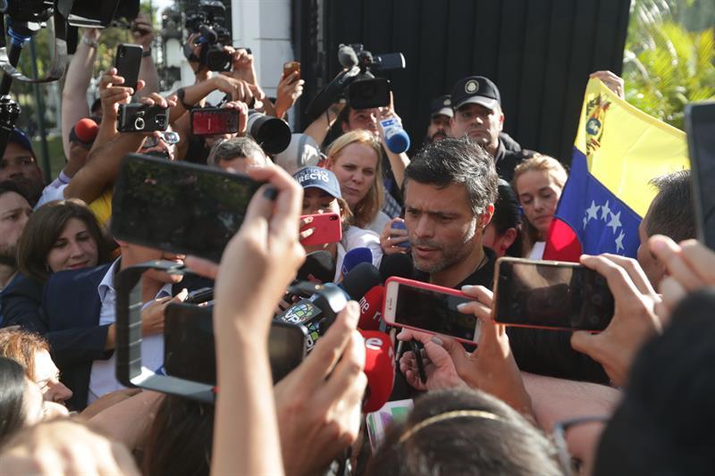 El líder opositor venezolano Leopoldo López advirtió este jueves que habrá nuevos alzamientos militares contra el Gobierno de Nicolás Maduro, que no reconoce, y que intentó derrocar con una efímera rebelión encabezada por el jefe del Parlamento, Juan Guaidó, junto a más de veinte uniformados el pasado martes.