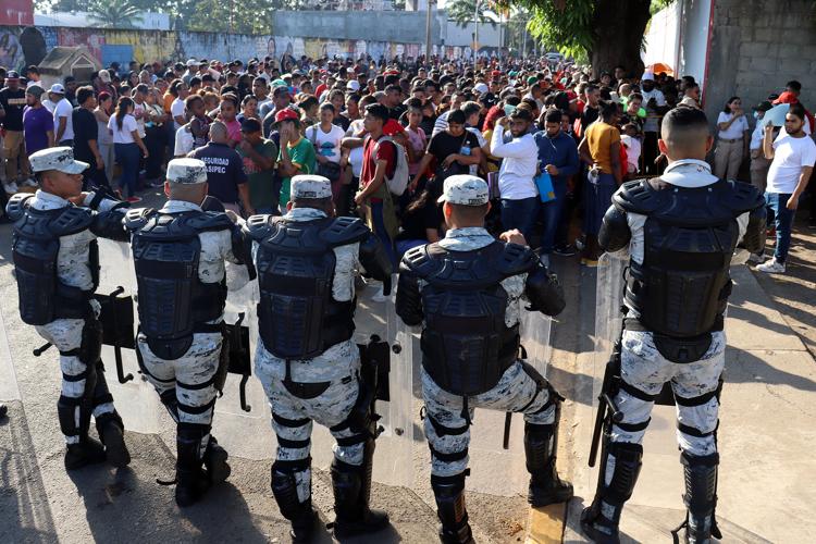 Un agente federal expresó con un megáfono que ya solo atenderán a quienes tienen citas del día 30 de enero hacia días anteriores.