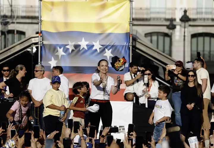 La concentración de hoy en la Puerta del Sol es el acto central de la visita de Machado a España, que se inició el viernes con reuniones con líderes conservadores españoles como Alberto Núñez Feijóo (PP) y Santiago Abascal (Vox).