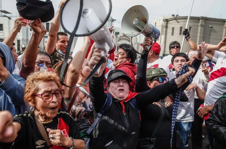 Los manifestantes piden el cierre del Congreso, que destituyó el miércoles al expresidente Pedro Castillo, quien previamente había anunciado la disolución del Parlamento, así como el adelanto de los comicios generales, un año y medio después del último proceso electoral en el país.
