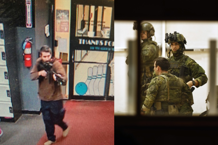 En las imágenes publicadas en redes sociales por la oficina del sheriff del condado de Androscoggin se puede ver a un hombre con un fusil de asalto entrando en una bolera.