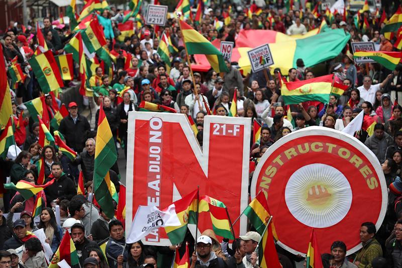 Miles de bolivianos participaron en las marchas y concentraciones que cerraron la jornada de movilizaciones convocada por organizaciones cívicas en todo en país, para demandar a Morales que cumpla con la decisión popular que justo hace dos años rechazó que vuelva a presentarse a un cuarto mandato consecutivo.