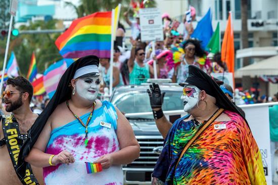 La siempre festiva Miami Beach sacó lustre hoy al brillo multicolor de las banderas del arco iris y entonó mensajes reivindicativos en la Marcha del Orgullo gay, cuya décima edición ha tenido como gran mariscal al esquiador olímpico Gus Kenworthy.