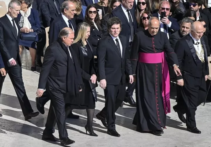 Javier Milei llegó a Roma el viernes con una delegación formada por varios ministros, entre ellos la secretaria general de la Presidencia, su hermana Karina, y se dirigieron directamente al hotel y no a la Basílica de San Pedro, asunto que han destacado los medios argentinos y algunos lo han criticado.
