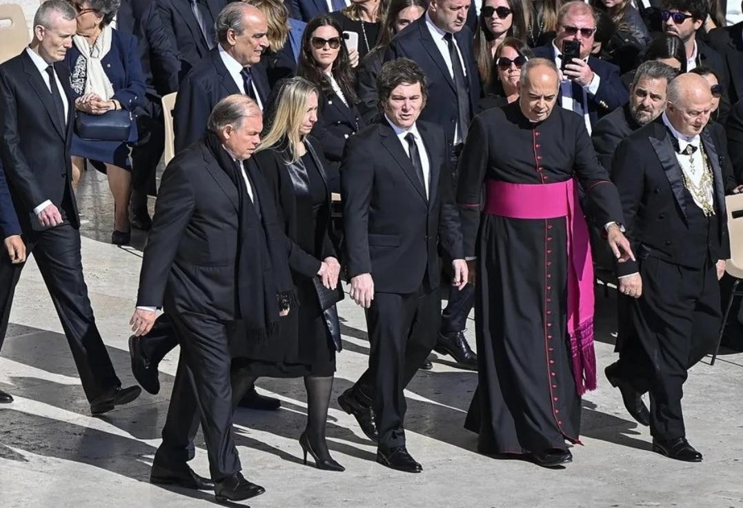 Javier Milei llegó a Roma el viernes con una delegación formada por varios ministros, entre ellos la secretaria general de la Presidencia, su hermana Karina, y se dirigieron directamente al hotel y no a la Basílica de San Pedro, asunto que han destacado los medios argentinos y algunos lo han criticado.