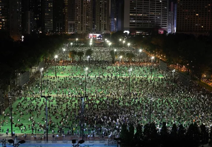 Millares de personas acudieron a la zona comercial de Causeway Bay, para rememorar aquel fatídico episodio, pese a que la Policía había prohibido el evento -por primera vez en 31 años- al considerar que violaría las restricciones impuestas por la pandemia de coronavirus.
