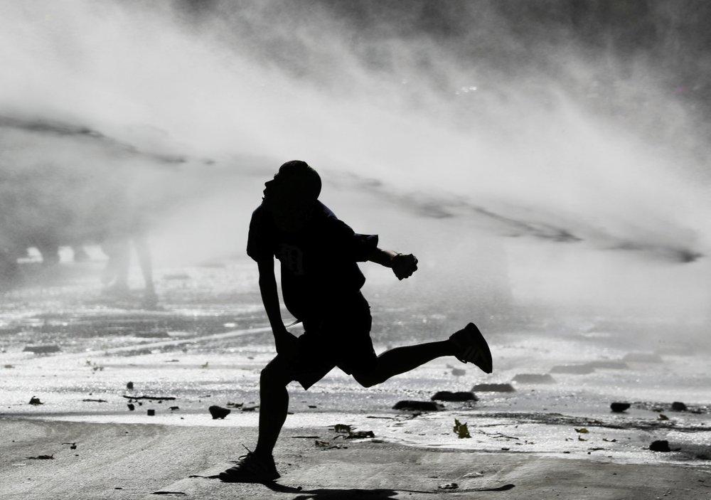 Según medios locales, un hombre de 40 años habría fallecido electrocutado al caer en un pozo mientras huía de los carros lanzaguas de los carabineros (la policía chilena).