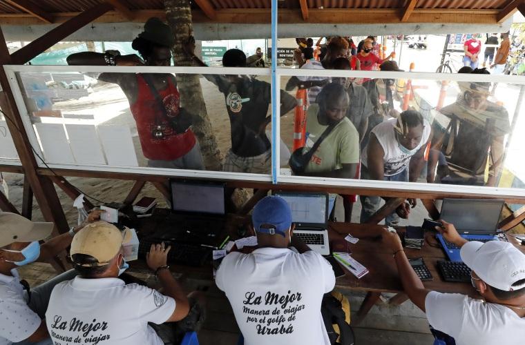 Los migrantes buscan llegar en bote a otras zonas costeras para poder adentrarse al Tapón del Darién, la peligrosa selva fronteriza entre Panamá y Colombia, y seguir su camino hacia Norteamérica.