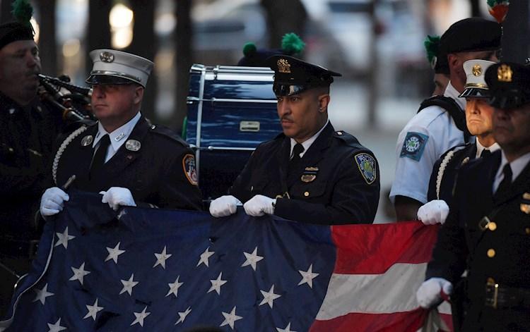 En una soleada mañana, como la que se vivió aquel 11 de septiembre de 2001, la ceremonia comenzó con el desfile de representantes de los servicios de emergencia portando una bandera estadounidense, tras lo que el Young People's Chorus de Nueva York entonó el himno nacional.