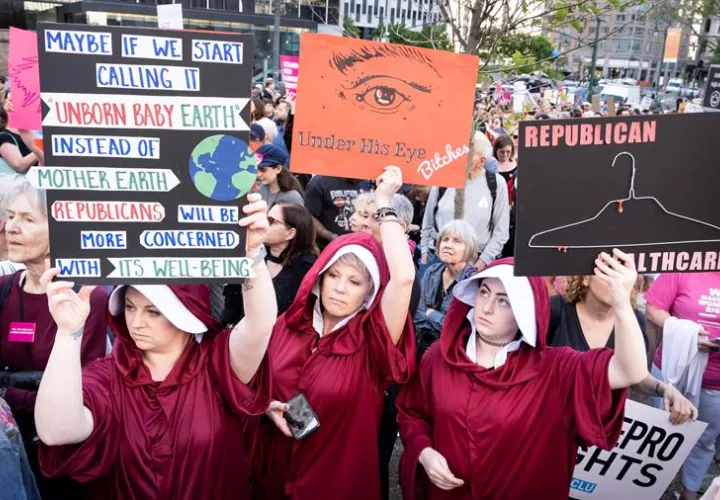 Los manifestantes portaban letreros con mensajes como "Sobreviví un aborto ilegal en Alabama en 1969. Nunca jamás", "Un embarazo y maternidad forzada es esclavitud", o "Regulen las armas, no mi útero".