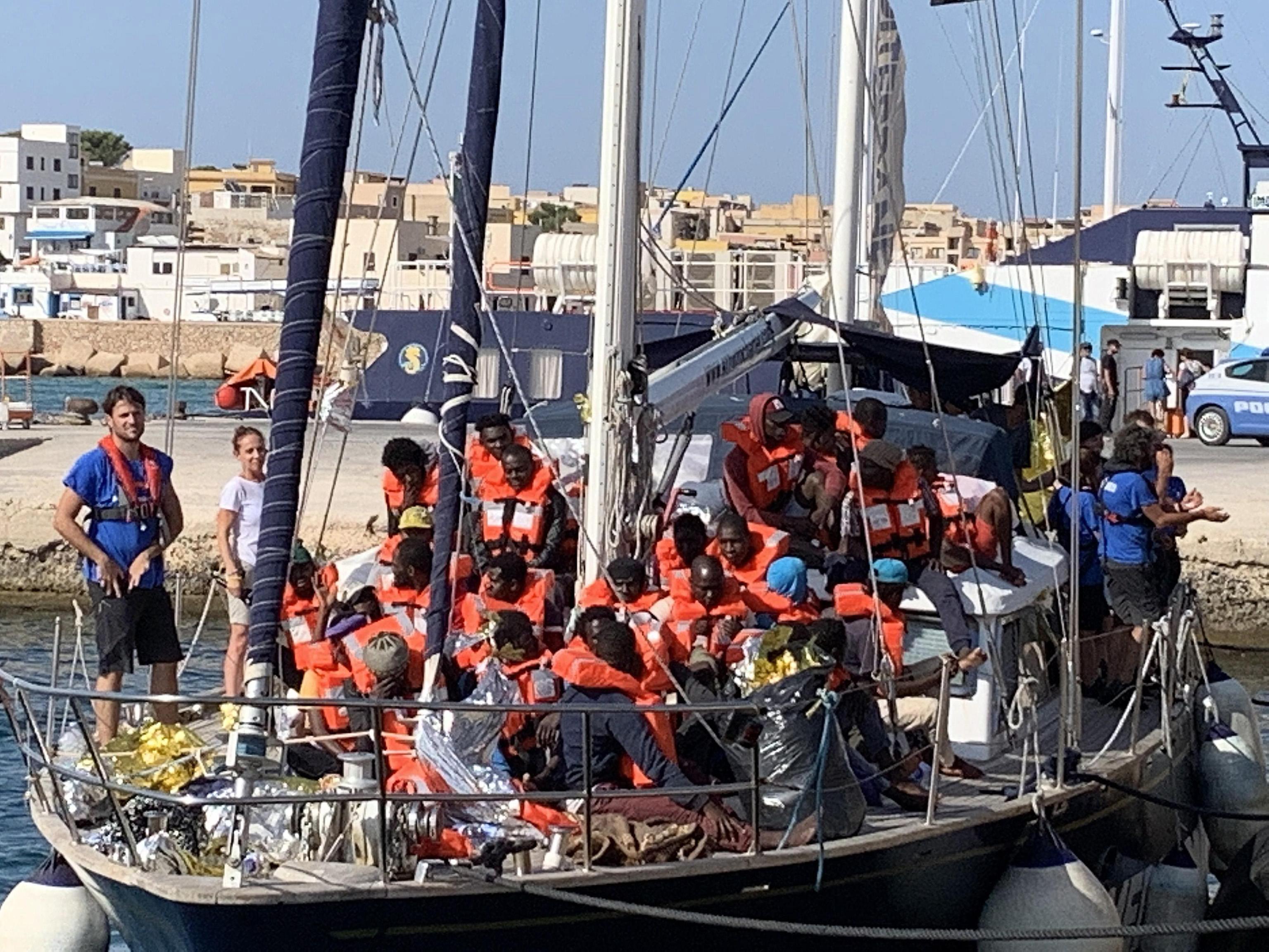 El barco, un velero de 20 metros de eslora, accedió a aguas territoriales italianas sin permiso y atracó en la isla, con todos los inmigrantes hacinados en su cubierta, protegiéndose del sol con mantas térmicas, según pudo verse en una retransmisión de la ONG.